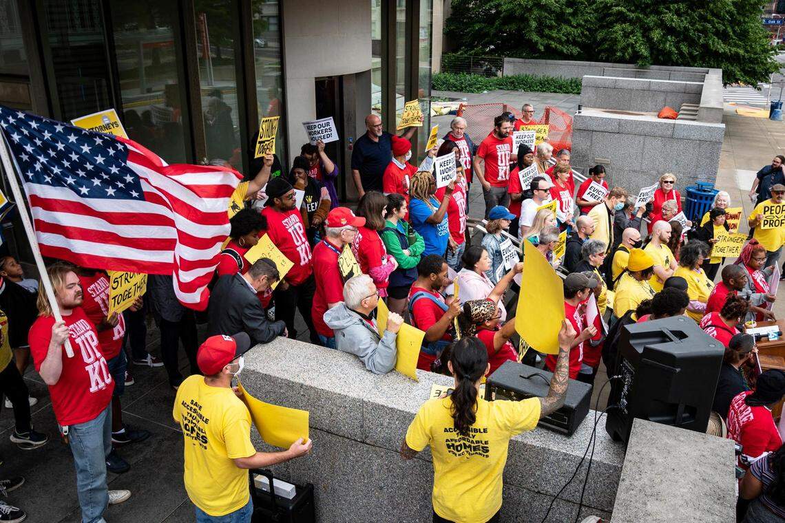 “What does that tell you about the city’s priorities?” said Sabrina Davis, a member of KC Tenants who spoke at the rally.