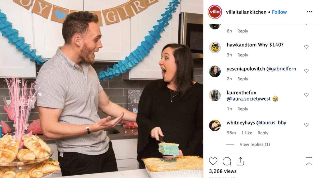 Villa Italian Kitchen, a New Jersey pizza and pasta chain, has created a gender-reveal lasagna - the layers inside are dyed either pink for girls, or blue for boys. The restaurant revealed it Tuesday on its Instagram page.