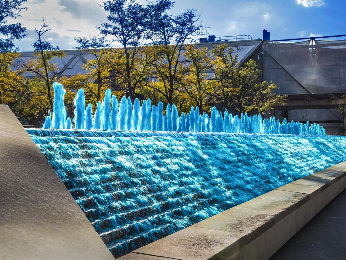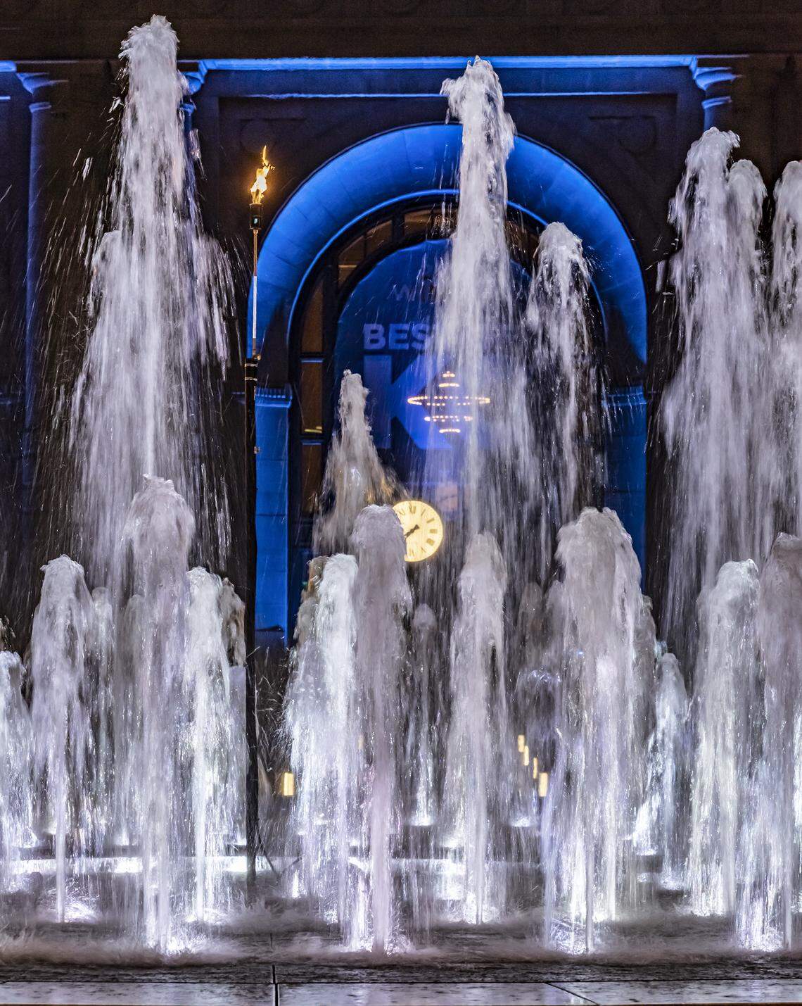 Henry Wollman Bloch Fountain: The Bloch Fountain features 232 water jets that work in unison to create a choreographed show every 90 minutes. The fountain is located directly in front of Union Station.