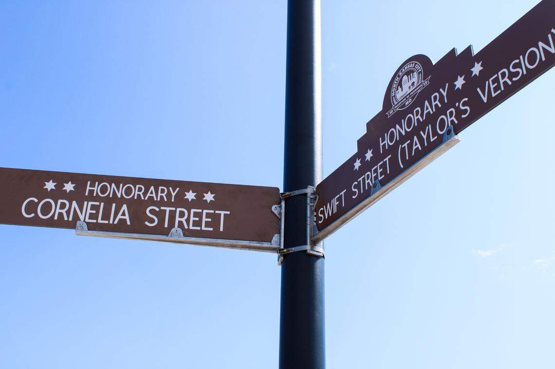 On June 22, the City of North Kansas City hung two street signs on the southwest corner of Swift Street and Armour Road for fans to take photos. One reads “Honorary Swift Street (Taylor’s Version)“ and the other says “Honorary Cornelia Street.”
