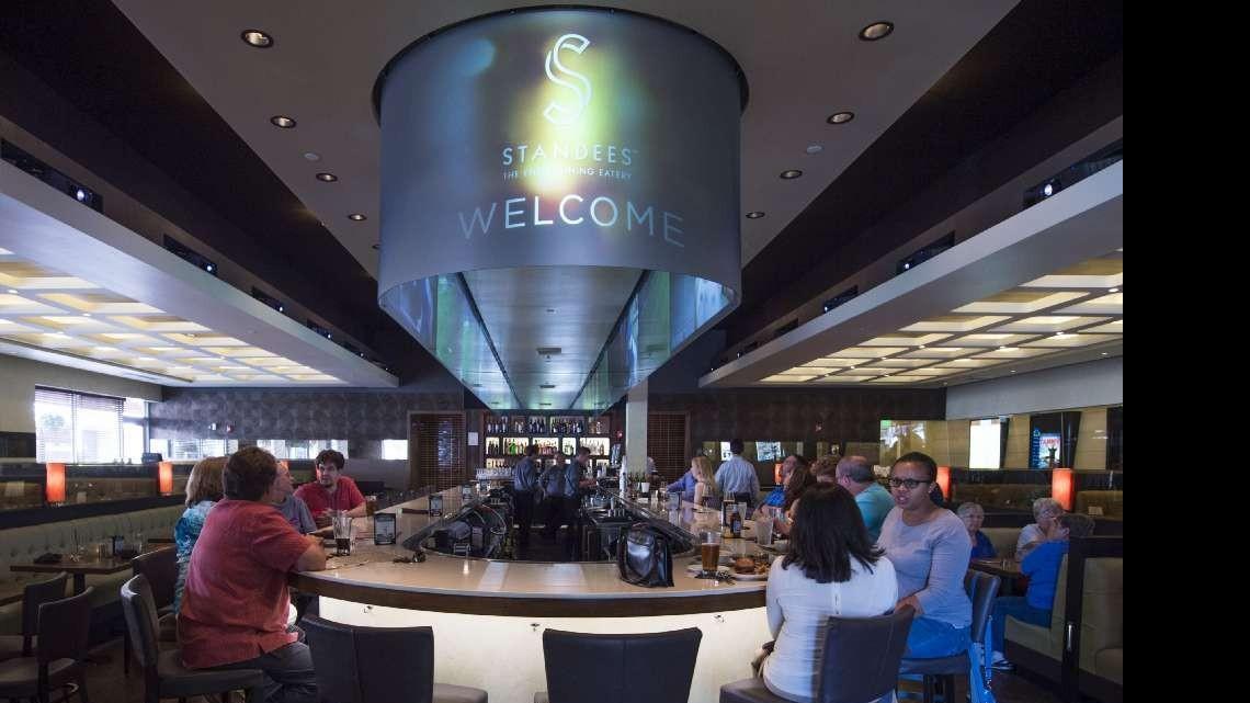 Standees — The Entertaining Eatery opened in May 2013 in the Prairie Village Shopping Center as a “restaurant first and foremost,” but also offering movie theaters, all under one roof.