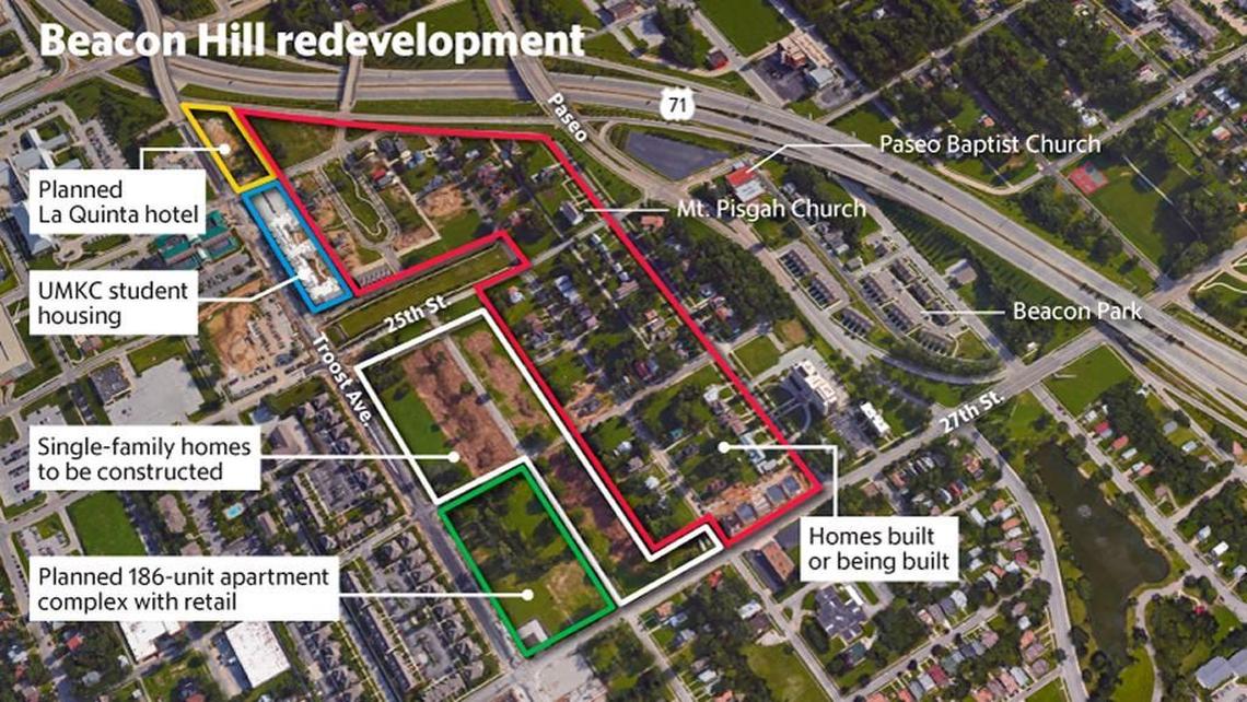 The center of the building boom is the narrow and historic neighborhood known as Beacon Hill just east of Truman Medical Center with boundaries from Troost to The Paseo and from about 22nd to 27th streets.