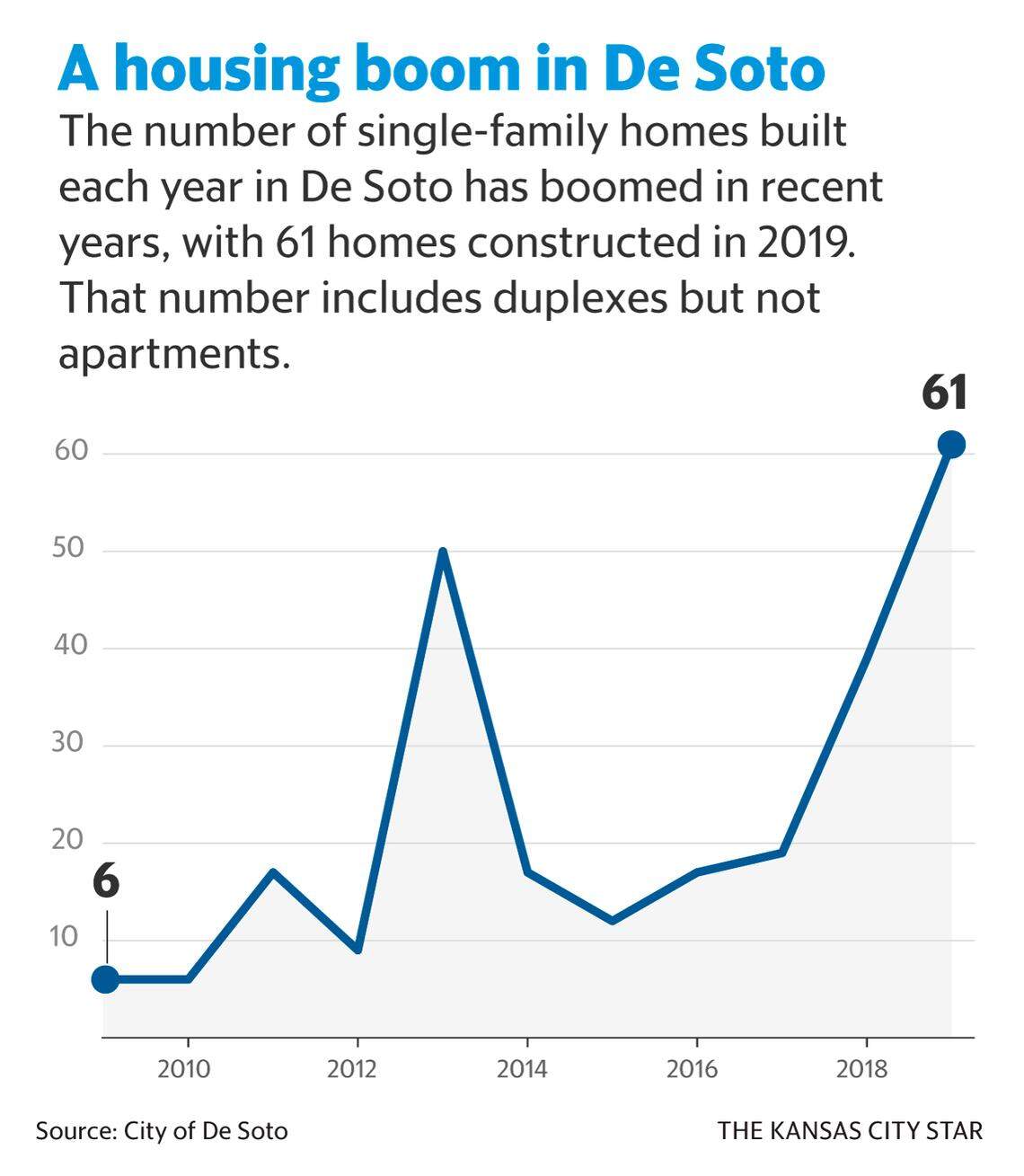 De Soto is quickly becoming a larger player in the wider boom story that has defined the county. The city’s population is growing. New homes are going up all around town. And housing prices have soared — outpacing the rate of growth in all other parts of the Kansas City metro.