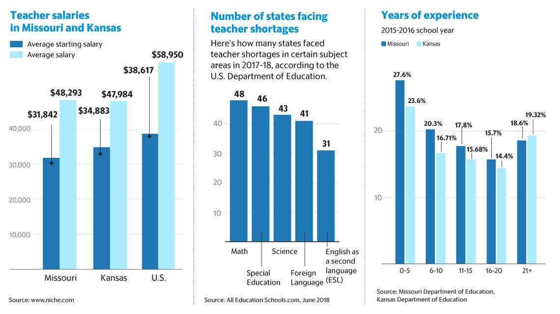 In Missouri, parts of Kansas and elsewhere, education officials say low salaries provide little to no incentive to lure people to the profession, much less keep them there.