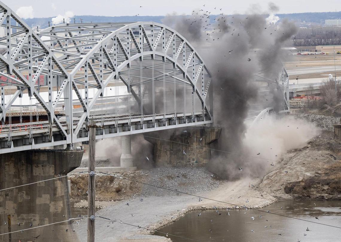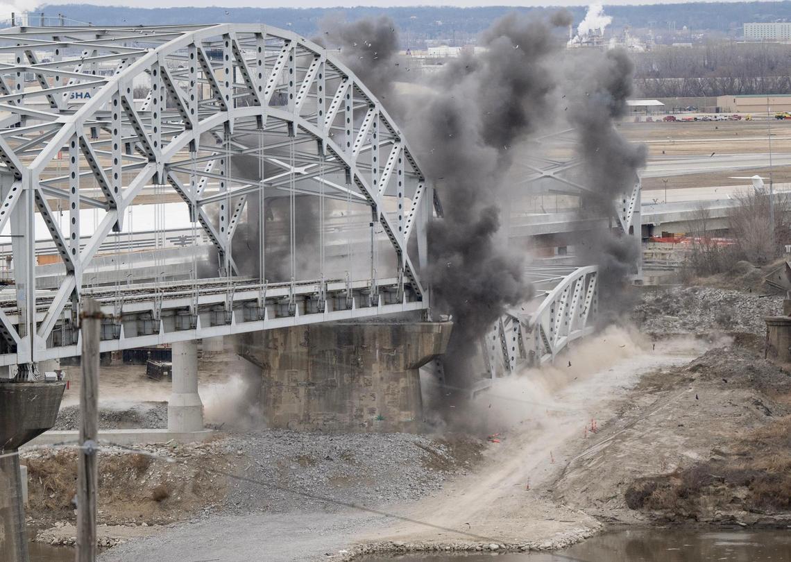 Major demolition on the triple-arch, steel-truss Buck O’Neil Bridge started with a bang. A big bang.