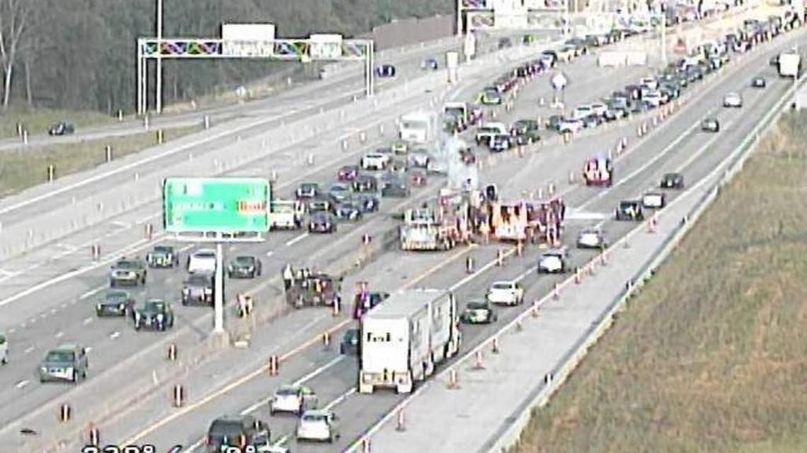 The Kansas Department of Transportation does not estimate the scene will be cleared until at least 9 a.m.