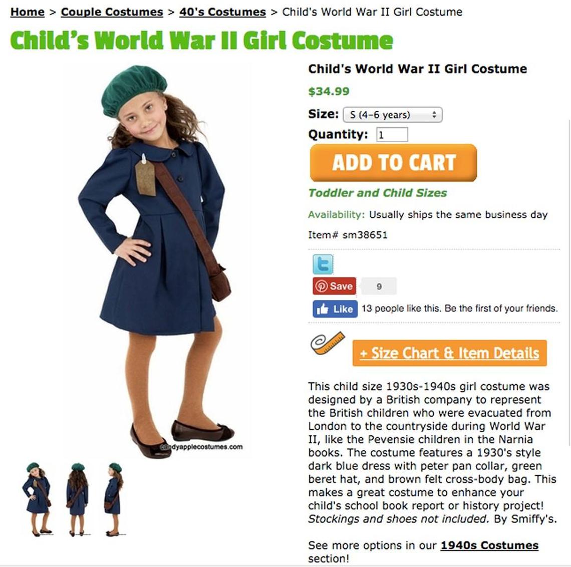 Fortune noted only one website, The Halloween Spot, still offering the “World War II Evacuee Girl Costume” online, though a company rep said it would be pulling the costume from it stock and apologized to anyone who was offended.