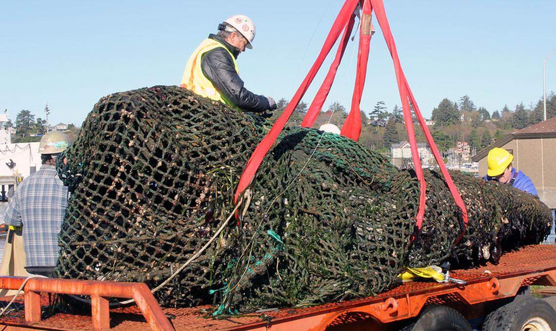 Experts said the Oregon carcass was hauled up in a daylong operation executed by Oregon Coast Aquarium divers and a crane crew on the dock.