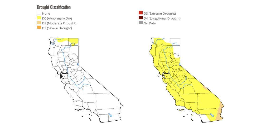 The lurch to dryness in mid-November was a drastic change from just days earlier, when 82 percent of California was experiencing no dry or drought conditions and only 18 percent of the state was “abnormally dry.” And months before that, none of the state was in drought at all thanks to heavy winter precipitation that pulled California from persistent drought, according to the U.S. Drought Monitor.