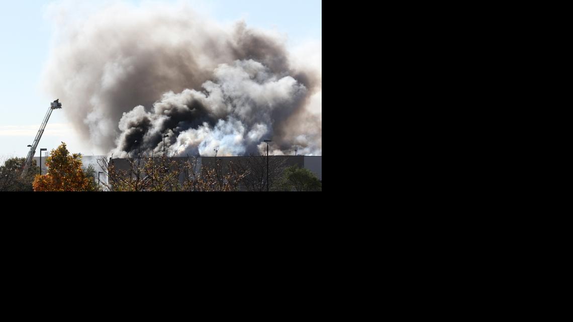 Behind him, light smoke continued to roll off the roof of the building. Its east face was partially charred and a section of bricks missing from the roofline were among debris scattered in the parking lot below. The plane, Blackwell said, was in pieces on the roof and the ground.