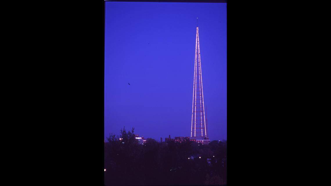Construction of the tower began in 1955 by what was then KCMO-TV, according to The Star’s archives. What was billed as the world’s tallest self-supporting steel tower (no guy wires) started transmitting a signal in February 1956.