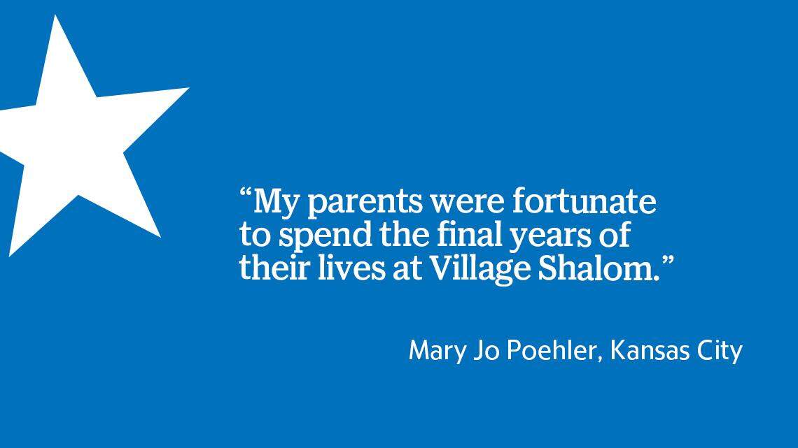 My parents were fortunate to spend the final years of their lives at Village Shalom. My sisters Martha, Carol, Ann, Kathy and I visited often, taking turns so that a family member was there six days a week, every week, for eight years.