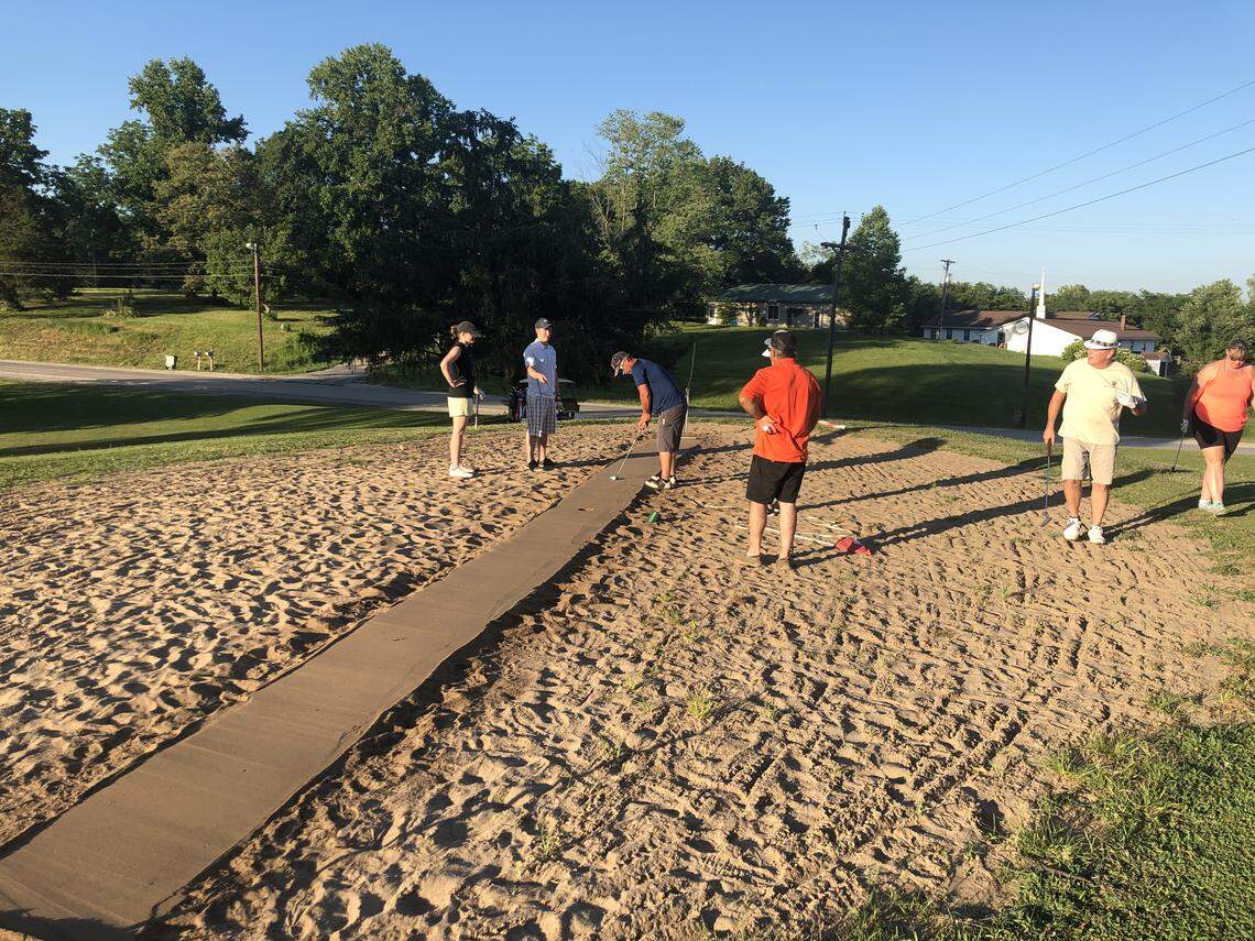 “Putting on sand, that kind of levels the playing field a little bit,” club member and Fayette resident Sheri Eaton said. “The good grass-green golfers aren’t great golfers on sand. It’s a leveler.”