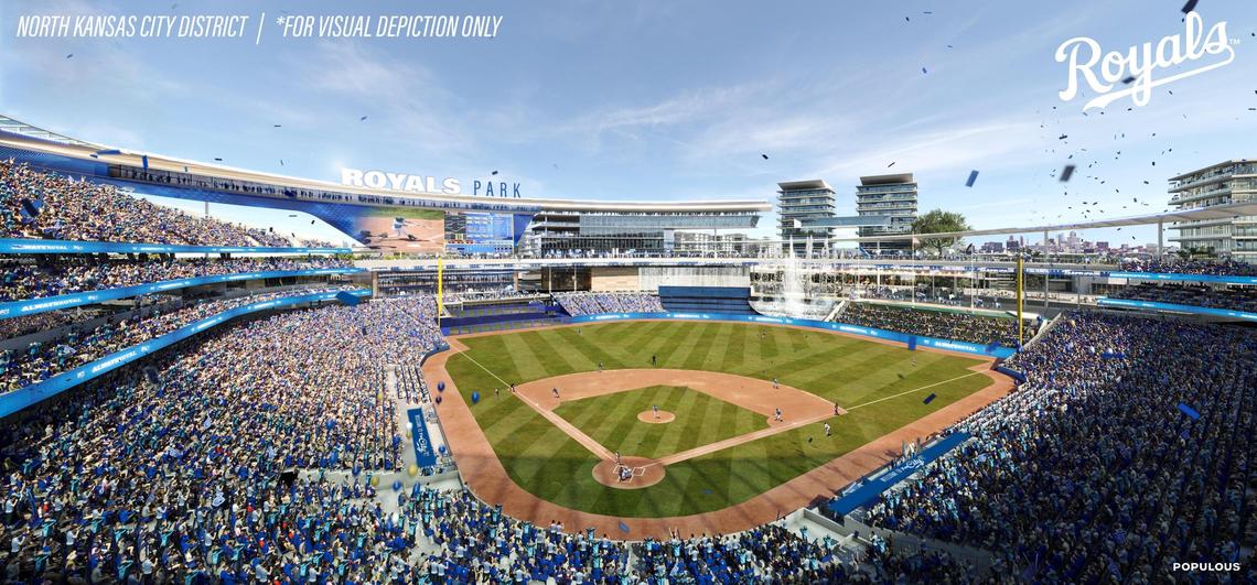 A rendering from stadium design firm Populous shows a concept of what a new Kansas City Royals stadium located in North Kansas City might look like. Kansas City Royals