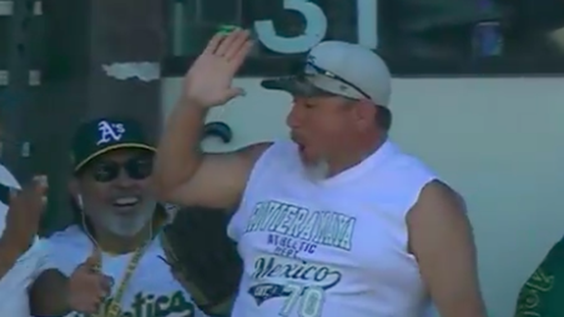 What are the chances that a fan catches foul balls on consecutive pitches? Well, it happened last year at an A's game that Sean Manaea started (just like Sunday). There is one big difference: that fan had a glove. The man on Sunday did it with his bare hands.