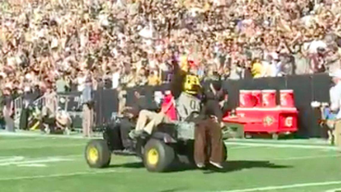 Colorado mascot, Chip, accidentally shot himself in the groin with T-shirt gun
