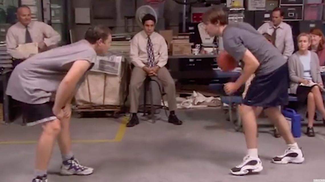 Jenna Fischer, who played Pam Beasley, said on the “Office Ladies” podcast there was a basketball hoop near the actors’ trailers and they would play horse during a break in shooting.