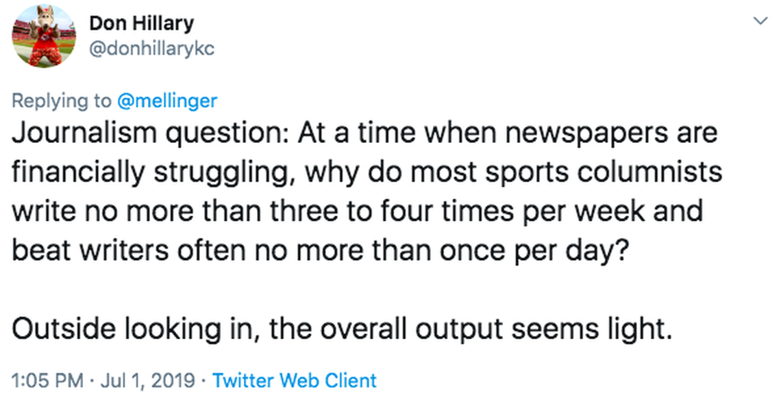 I could write you four columns a day, but I’ll bet you’d be happier if I wrote four a week and was able to take the time to build trust with and have conversations with people from the Chiefs and Royals and Sporting and colleges that inform those columns and provide better perspective.