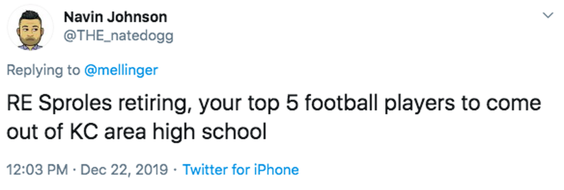 So, honestly, guys? That list is not as awesome as it should be for a city our size. I trust you’ll let me know who I’ve forgotten, because maybe Aaron Donald went to Park Hill South or something when I wasn’t watching.