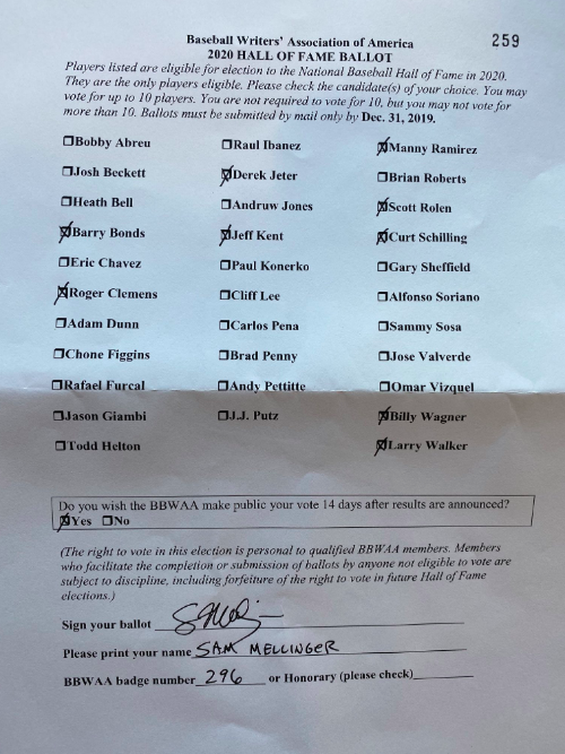 First, my ballot:
