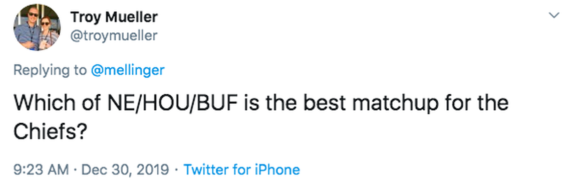 But I do think the Titans are the last team the Chiefs wanted to see. I KNOW they’re the last team Chiefs *fans* wanted to see.