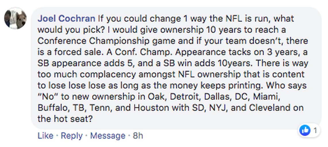 I have absolutely zero patience for owners crying poverty over this, particularly when taxpayers routinely hand over hundreds of millions of dollars for stadium renovation and construction. If you don’t want to be told how to run your business then don’t ask for help.