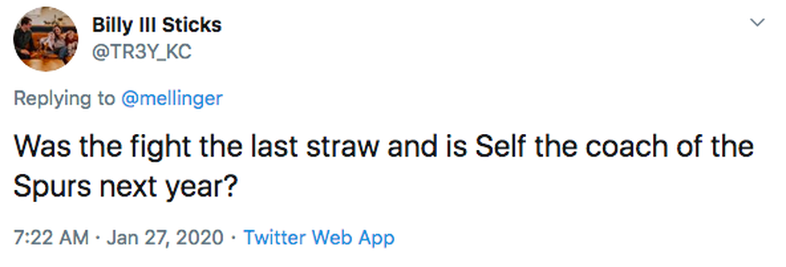 I’ve actually heard some wonder if Self secretly liked the fight. His entire worldview is about toughness, the thinking goes, so part of him had to like that his guys stood up when challenged.