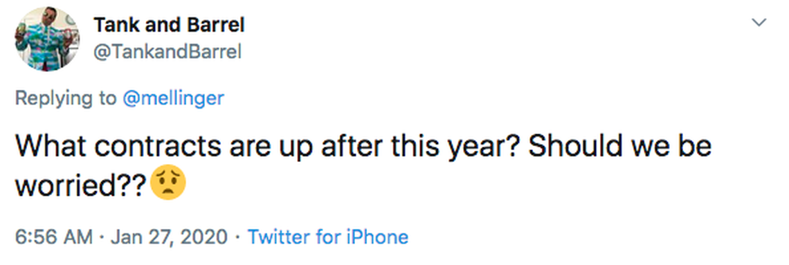 There isn’t an expiring contract you should be freaked out about. Chris Jones is the closest thing, but the Chiefs can (and almost certainly will) give him the franchise tag and attempt to work out a long-term extension. The Chiefs want him here, and Jones wants to be here. It seems likely that something will be worked out, but the worst-case scenario isn’t a disaster — they get a Pro Bowl season of production for peanuts, then trade him for multiple high picks.