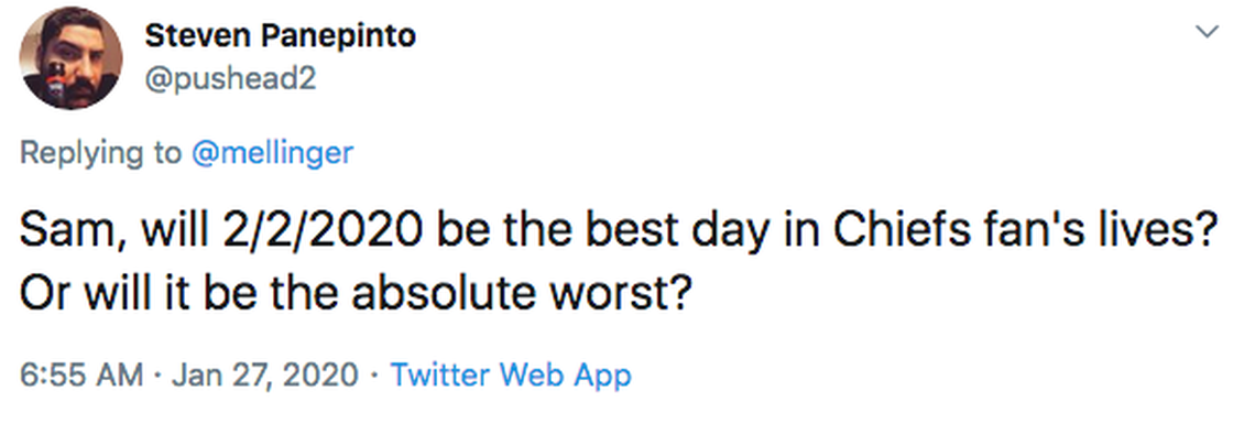 But I also think that even if the Chiefs lose on Sunday their fans will wake up Monday morning with, well, is it too obvious to point they’ll wake up with a hangover?