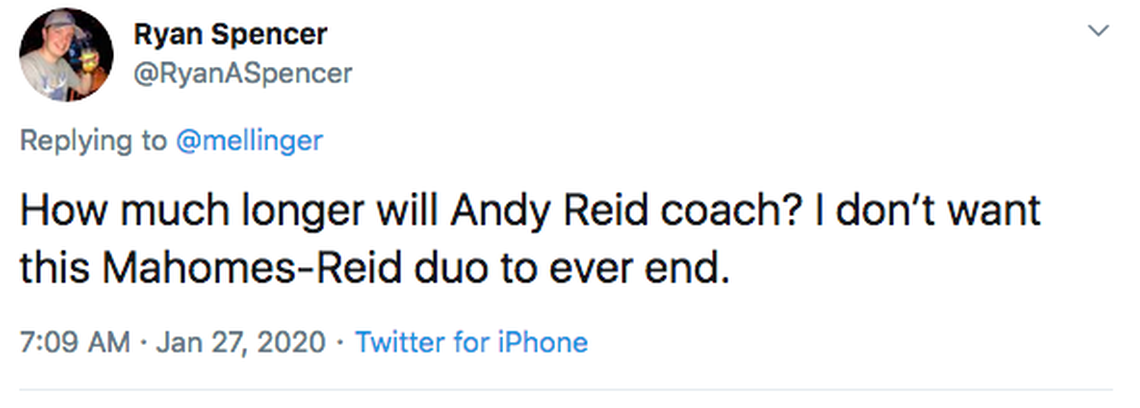 I believe that Reid has waited his entire football for Patrick Mahomes. I believe that coaching this kid, with all the innovation and tricks he’s learned in more than a quarter century of coaching in the NFL, is the experience of a lifetime.