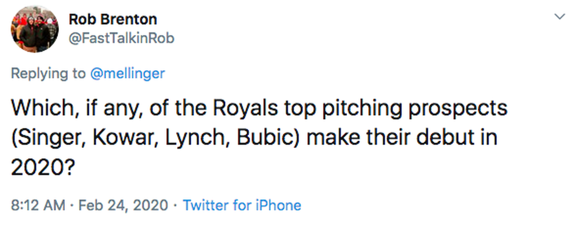 The other two are guesses. If you’re forcing me to say I might tag Bubic as a September guy, though the timeline could accelerate or decelerate based on what happens between now and then.