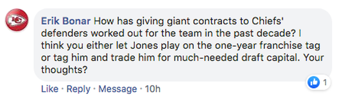 I know we all want villains, or someone to blame, but I don’t have a problem with how either side has handled this. Jones wanted to be paid last summer, sort of skipping a step in the typical progression, and the Chiefs wanted to wait.