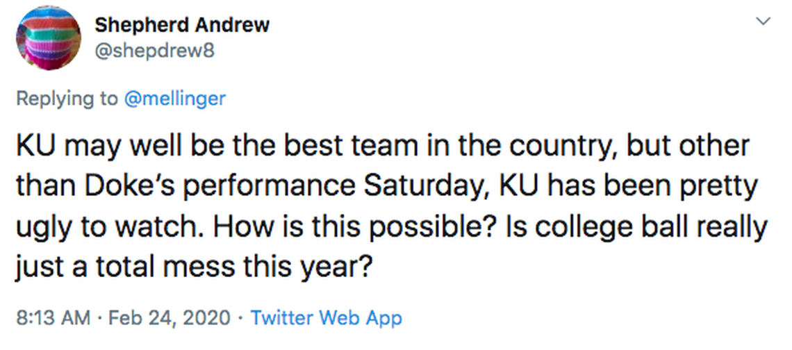We’re way off track here. You asked about KU and I came back with a bunch of “feel how you want to feel but this is how the sport could be improved.”