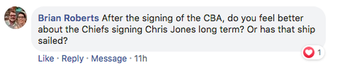 Combined with the length of the CBA (through 2030) and expiring TV contracts (2022), it does seem like the Chiefs and Jones might have a path toward a continued relationship.