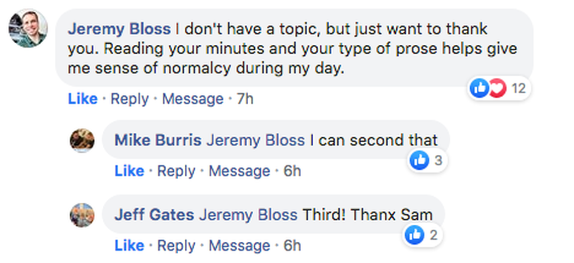 Hey, thank you, this means the world to me. I hope most of you have been reading this timesuck long enough to know I don’t include a lot of compliments from readers on here. That’s not what I want this to be about.