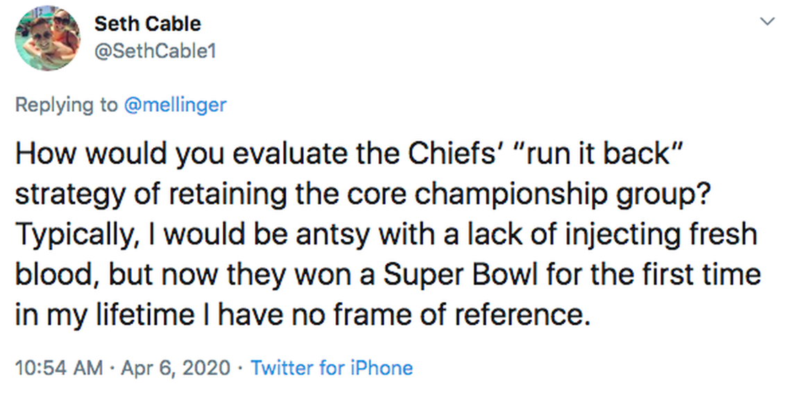 I also believe this: The 2020 Chiefs might be the clearest exception I could imagine:
