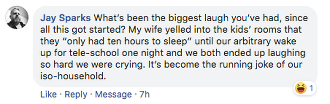 But, at least at this moment, the time has been good for us. If you’d have asked me a few months ago what I wanted more of, I would’ve said time. This isn’t the way I’d want it, obviously, but I’m proud of how our family has handled the extra time together.