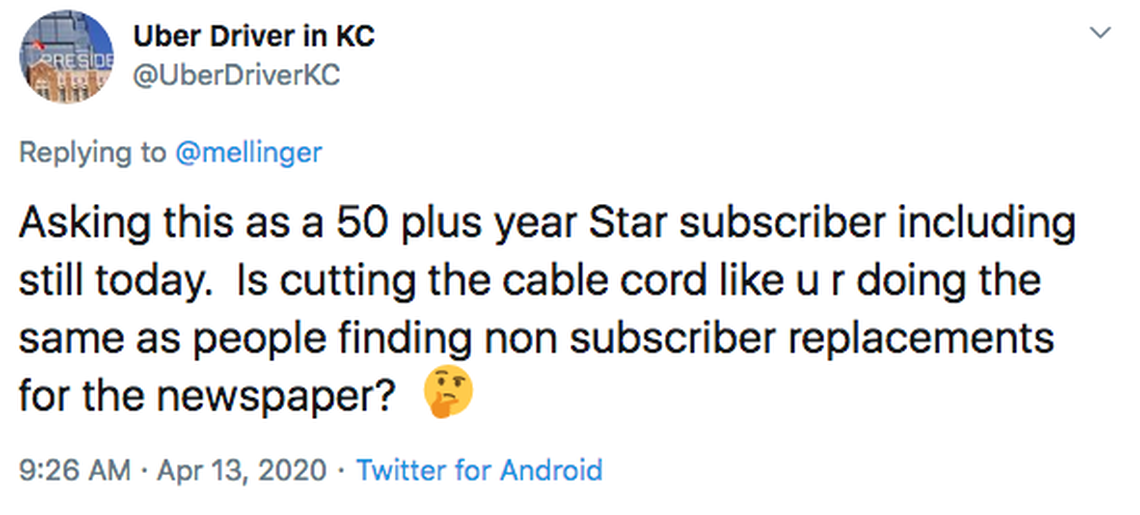 Second, please continue to let me know how you’re getting through this. You can call that same number, email smellinger@kcstar.com, or reach me through Facebook or Twitter. DMs are open.