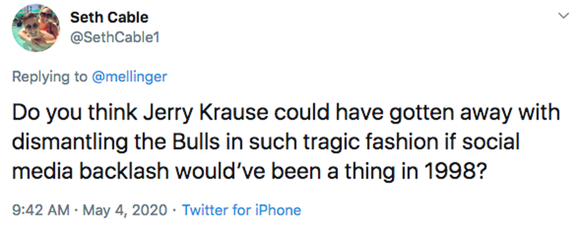 So, if all of that was happening today I’m curious how it would’ve been publicly digested. Jordan is always going to win a popularity contest but there also would be more information about Krause and his contributions.