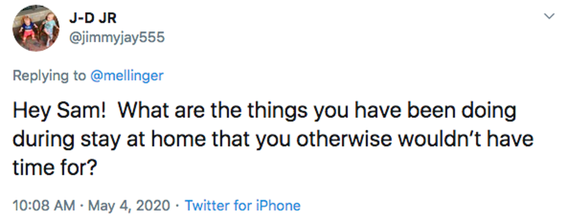 I guess in general, there’s a slower pace that’s welcomed. Homeschooling — and I want to be clear that my wife does at least 99 percent of it — doesn’t have to start at 8. It can be 9, or 10, or really whenever. Being in control of little things like that is nice, and, actually, will be missed when we get normal back.