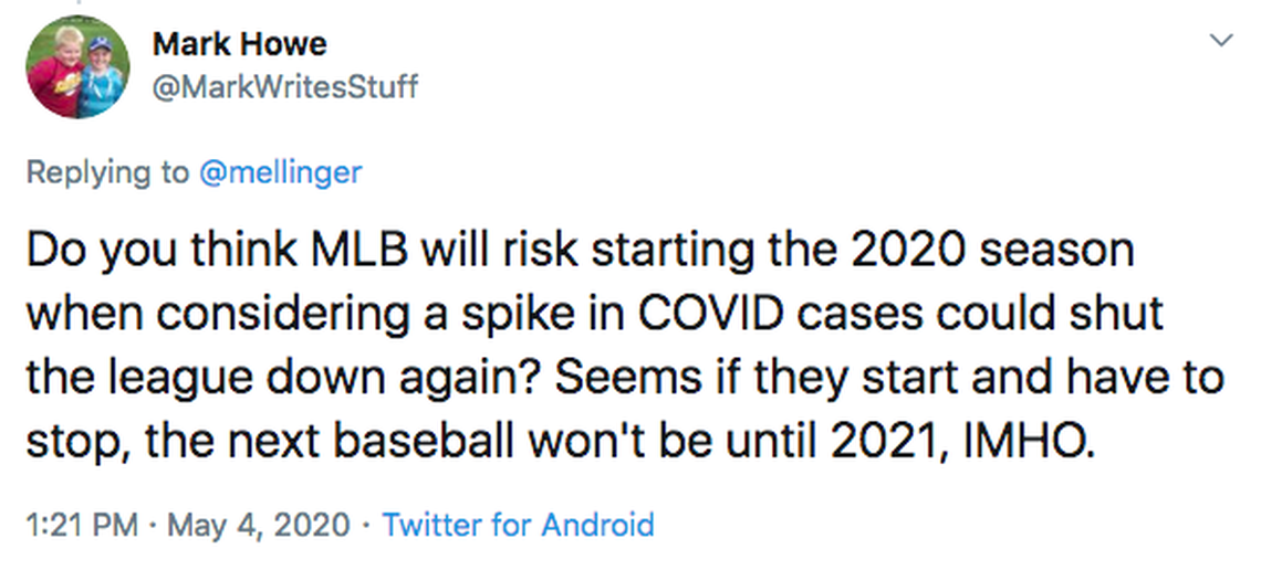 We agree that starting and stopping would likely mean no more baseball until next year. But at what point does that risk become palatable?