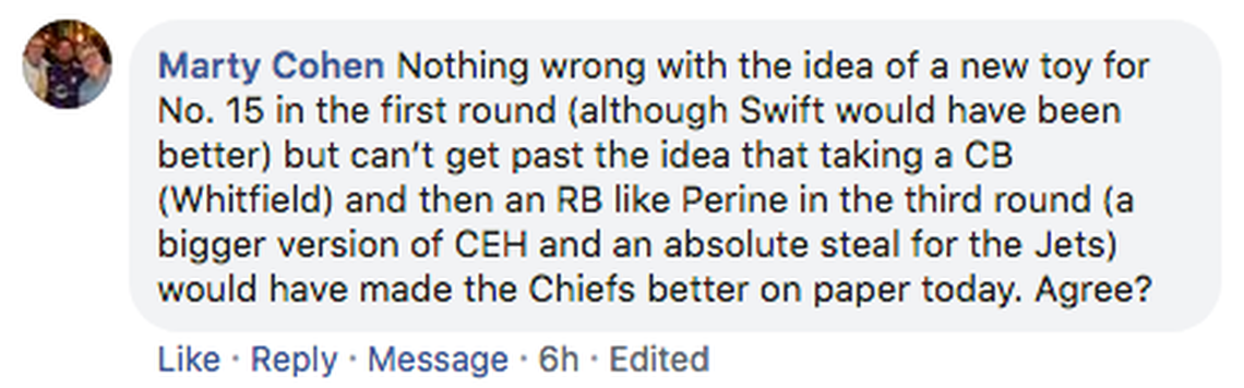 Without writing those columns again I’d summarize like this: I understand and am on board with what they like about Edwards-Helaire both individually and as a fit, but believe the better way to maximize value from the draft would’ve been exactly what you said there.