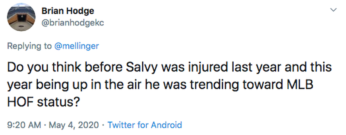 These Hall of Fame debates can be tricky, because simply having the kind of career that merits one means you’re talking about a damn good player. Perez will be a Royals Hall of Famer, of course, and he’ll have an interesting case for his number being retired someday. I believe his swing in the Wild Card game should be a statue.