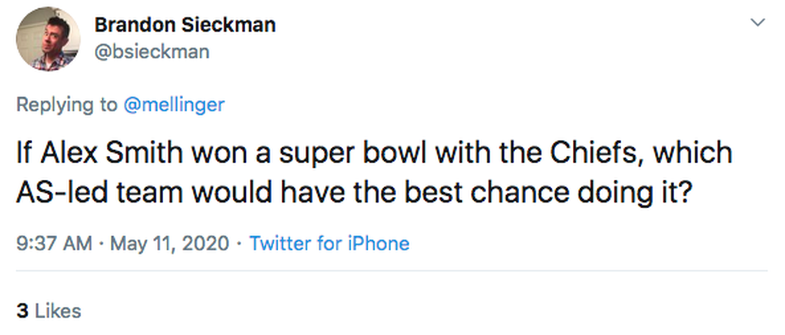 Anyway, that’s more than you’re asking for here. The money quote in the column about his hypothetical baseball career came from Michael Kopech, who was a high school rival of Mahomes’. Kopech was the 33rd pick of the 2014 draft and when we talked for the column he was the No. 10 prospect in baseball. He was promoted to the big leagues shortly after, but missed all of 2019 rehabbing from Tommy John surgery.