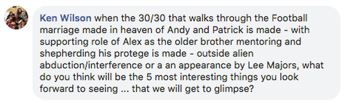 1. Patrick Mahomes talking openly and honestly about, well, everything. He’s good enough in the traditional media settings — he’ll shut down a bit with goofy personal questions, but is tremendous with specific football stuff — but if he opened up the way Michael Jordan has for The Last Dance it would be everything.