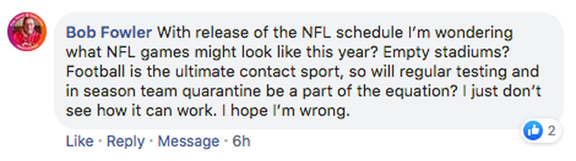 It is notable that the NFL schedule was put together in a way that makes it highly malleable. They can push games back, they can chop the first four weeks and add them to the end, they can do a lot of things. They gave themselves options to read and react to the virus’ spread and the advice of health experts.