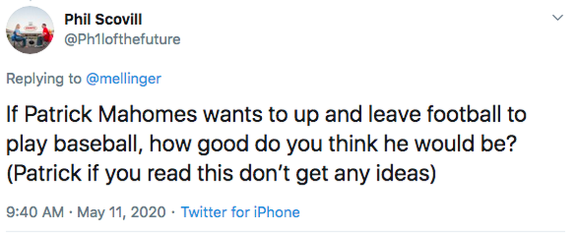 It should not surprise you that we’ve written about Mahomes’ baseball talent, and it should not surprise you that I’ve wasted a lot of time — mine and others’ — talking and thinking about this.