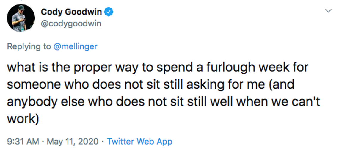I think we’ve all thought about this. If nurses and doctors and others in healthcare are being furloughed then the only ones safe are people who work at Netflix and Clorox.