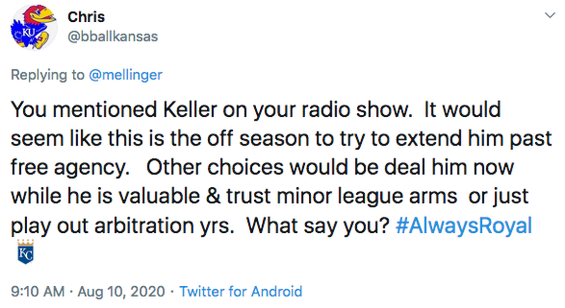 I haven’t asked around on this, but my suspicion is the Royals would be open to a long-term deal with Keller right now but won’t be pushy. The team views these negotiations as a collaboration, a partnership. There’s no rush right now.