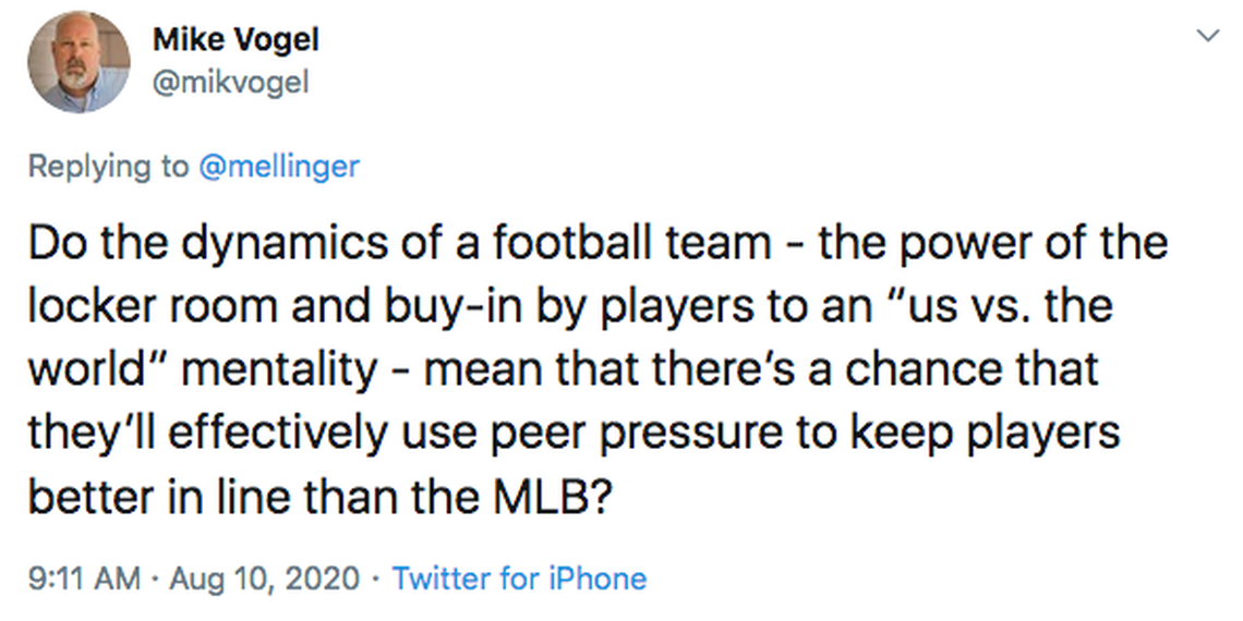 The travel risk is likely overblown. Also, baseball players are in club protocol more than football when you consider travel.